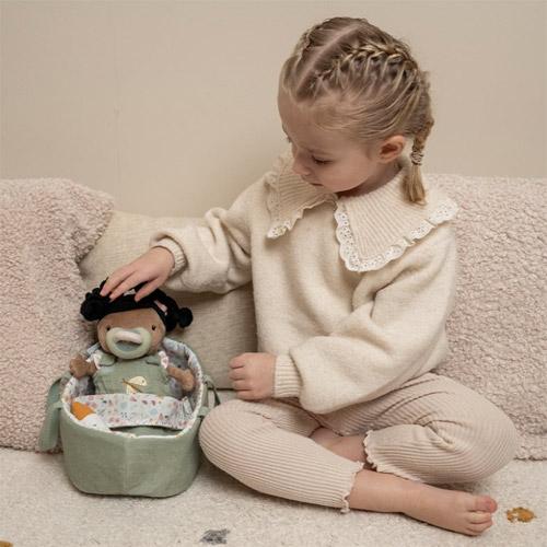 Deze lieve pluche pop van Little Dutch wil graag geknuffeld en verzorgd worden.