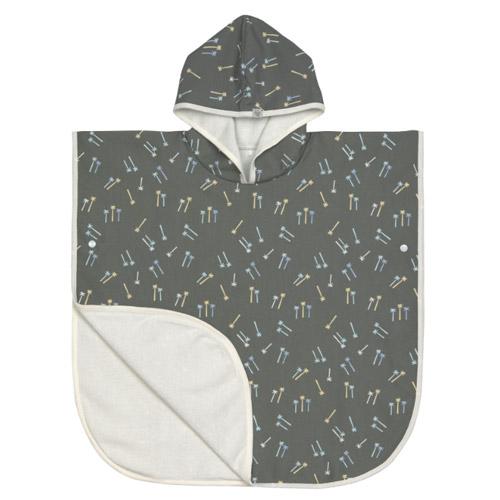 De microvezelbuitenkant van de strandponcho beschermt tegen wind, terwijl de badstofbinnenkant vocht absorbeert.