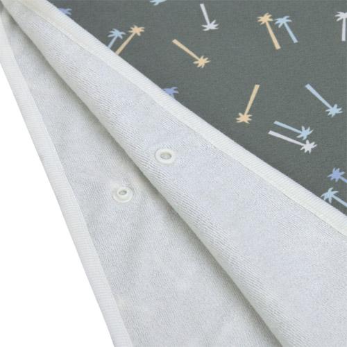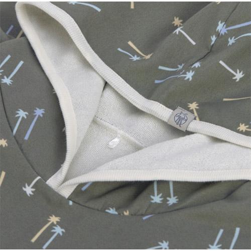 De knuffelbare kinder UV-badponcho in het Palms diep olijfgroen design met UV-bescherming 80 houdt je heerlijk warm na het spetteren.
