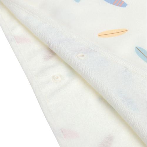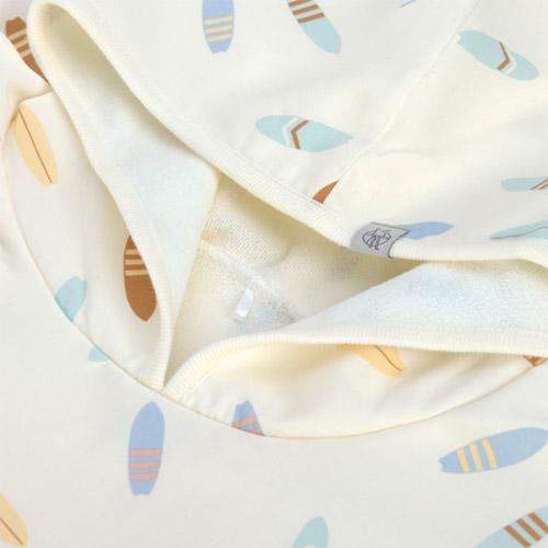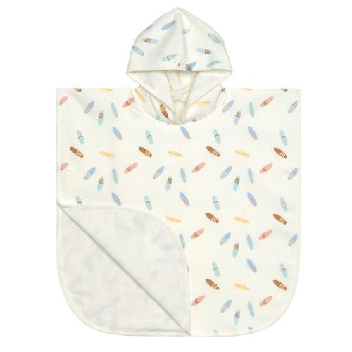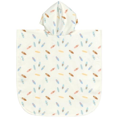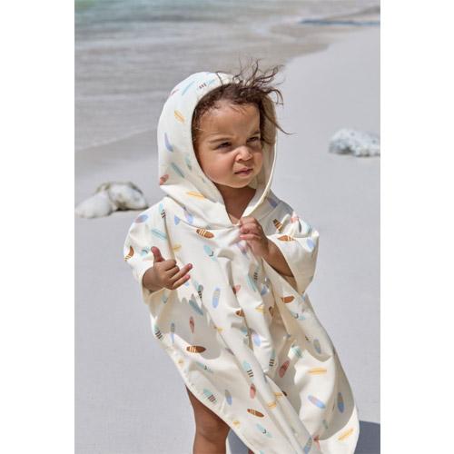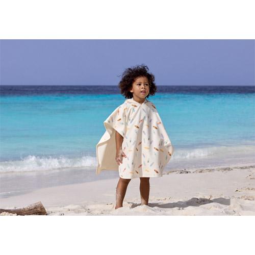 De knuffelbare kinder UV-badponcho in surfplank-zeezout-design met UV-bescherming 80 houdt je heerlijk warm na het spetteren.