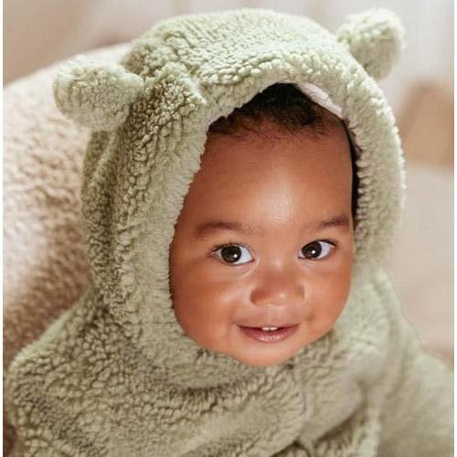 Gemaakt van zacht en warm teddymateriaal, omhelst het je kleintje in knusheid.