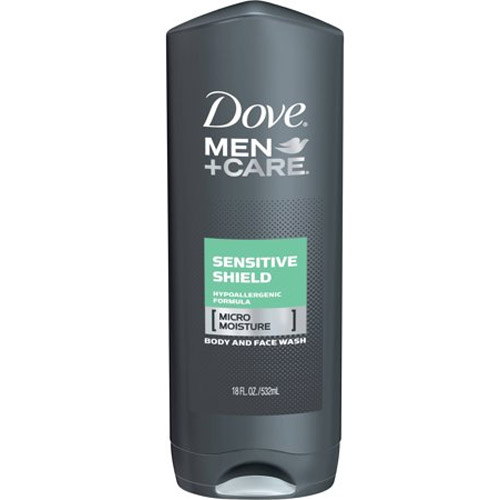 Dove Men+Care Sensitive Shield Douchegel met MicroMoisture technologie helpt de huid te beschermen tegen uitdroging en irritatie.