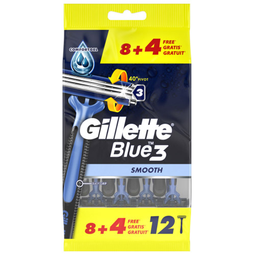 Wegwerpmesjes die eenvoudig voor een comfortabele scheerbeurt zorgt? Gillette Blue 3 Smooth bereikt dit dankzij de 3 mesjes met coating in chroom die de huid volgen en een draaiende scheerkop die zich aan je gezichtscontouren aanpast. Het scheermesje heeft een lubrastrip die zorgt voor een gladde scheerbeurt en het eenvoudig afspoelen voor 2 x betere reiniging. Het heeft ook een Easy-Grip handvat voor een goede weerbaarheid.