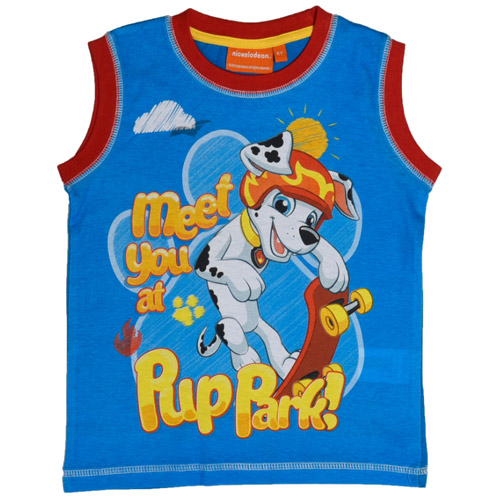 Lichtblauwe T-shirt zonder mouwen met een afbeelding van Marchall uit Paw Patrol.