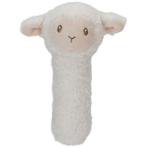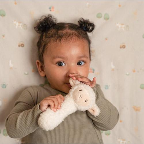 Het schaapje met zijn zachte vacht vindt het leuk om met baby's te spelen.