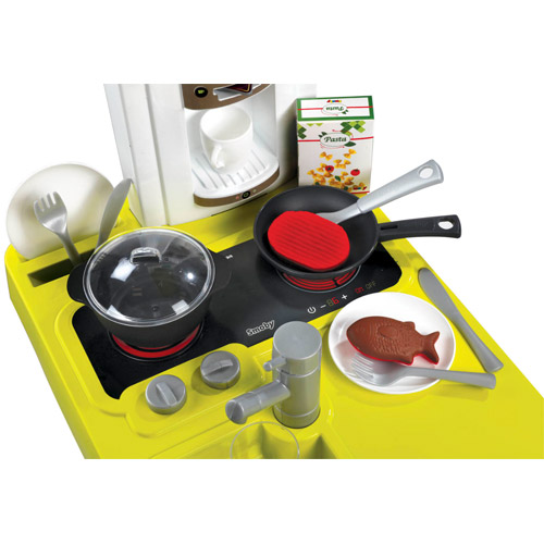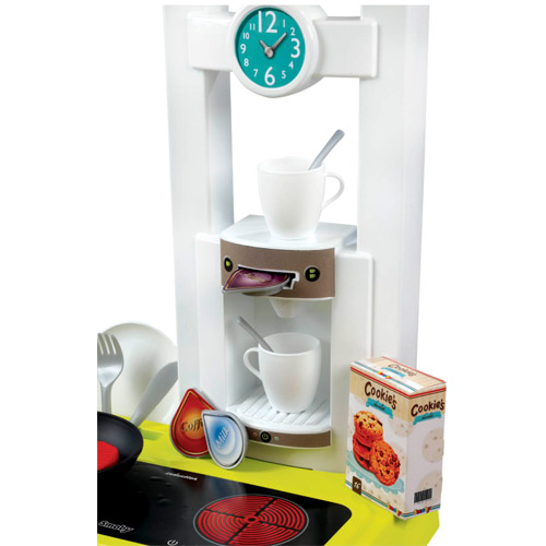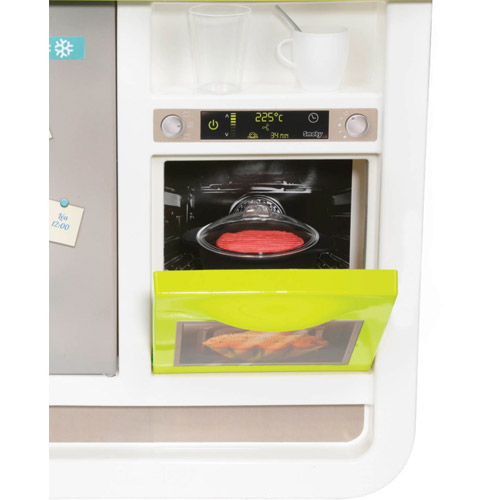 Het keukentje heeft veel functies zoals een magische braadpan, kookpot met kookgeluiden, de espressomachine en de oven ...