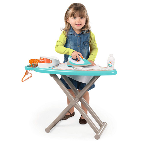 Droog ze aan het wasrekje en strijk ze daarna met je strijkijzer van Smoby.
