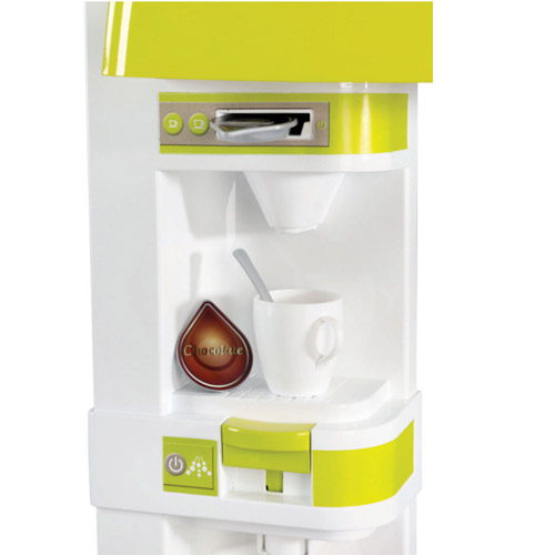 Een frisdrankautomaat met geluid en een espresso machine met tabs rondom de uitrusting af.
