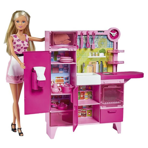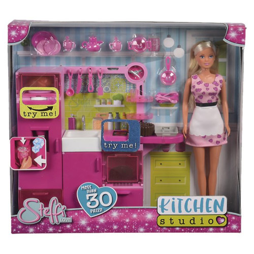 Bij deze 30-delige set zit ook een Steffi Love pop met modieuze keuken-outfit, inclusief vele toebehoren.