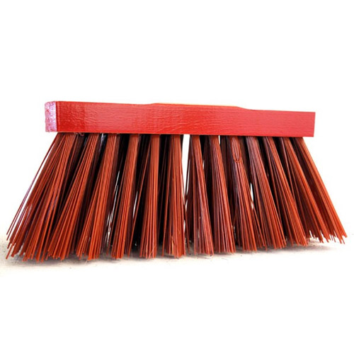 Voor het opvegen van bladeren zijn deze straatvegers prima toepasbaar, ze hebben lange harde borstelharen met een houten rood geverfde rug.