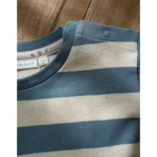 Geef je kleine avonturier een stijlvolle start met dit blauw - zand gestreepte T-shirt van Little Dutch.