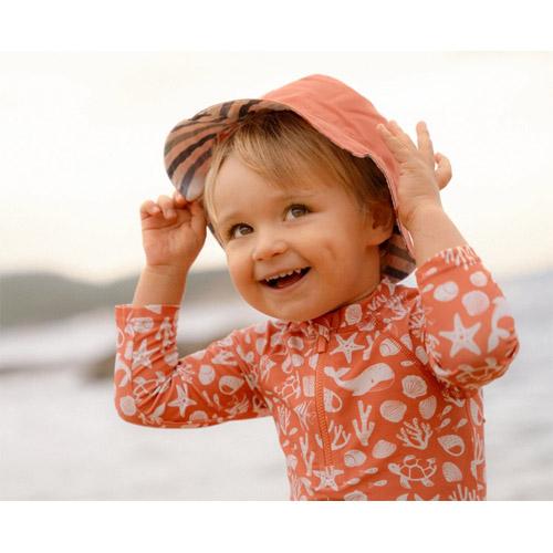De brede rand die kenmerkend is voor een bucket hat zorgt voor schaduw voor het gezicht en in de nek, waardoor je kleintje koel en beschermd blijft.