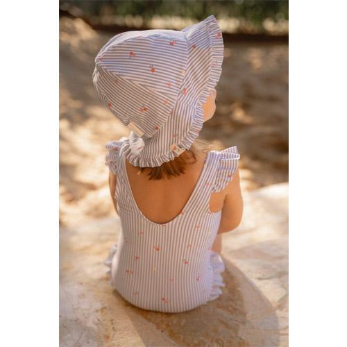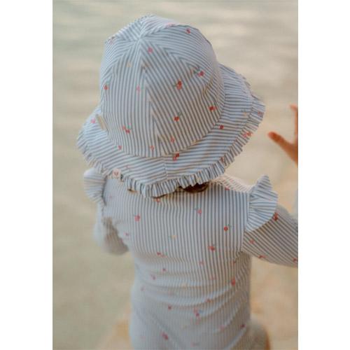 Het hoedje heeft een brede rand met schattige ruches langs de rand voor optimale zonbescherming, zodat je kleintje zonnige dagen aan het strand of bij het zwembad in stijl en comfort kan doorbrengen.