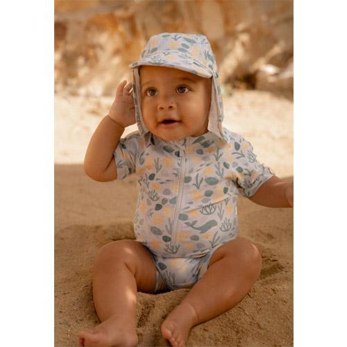 Spetteren in het zwembad of zandkastelen bouwen op het strand, je kleintje blijft beschermd en stijlvol in het Seashells ontwerp dat de magie van de oceaan tot leven brengt met een uitbundige reeks schelpen, zeesterren, koraal en walvissen.
