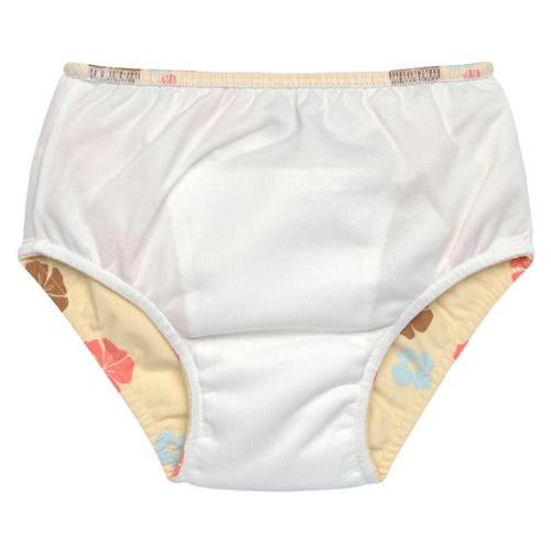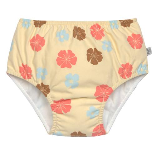 De gele babyzwemluier met bloemenprint biedt een mooi en milieuvriendelijk alternatief voor wegwerpluiers.
