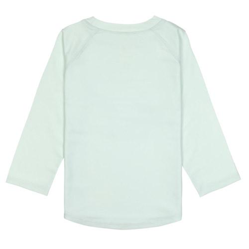 Het mintgroene, lange mouwen UV-shirt voor kinderen met UV-bescherming 60, heeft een Camper-print en is gemaakt van extra zachte stof.