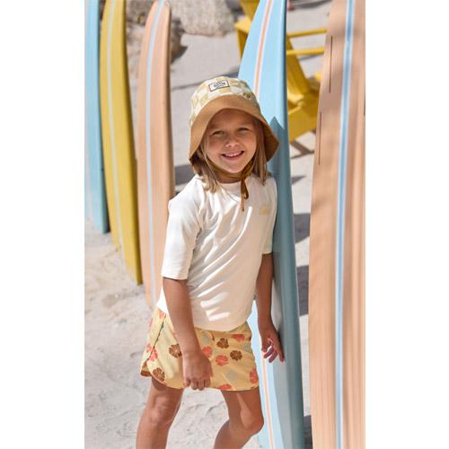 De gele zwemshorts voor kinderen (3 - 6 jaar) zorgen voor een stijlvolle surferslook tijdens een zwemtocht.