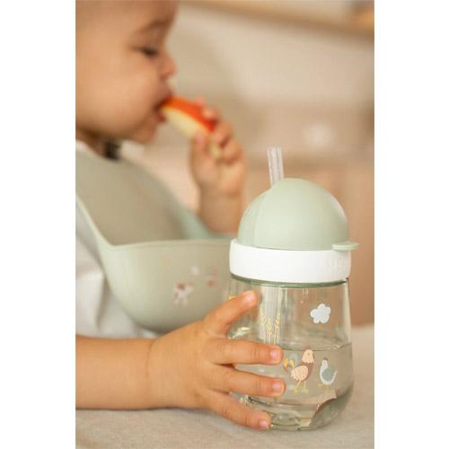 De Mepal Little Farm rietjes beker helpt je kindje oefenen om zelfstandig te drinken.