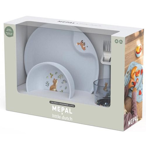 Met het 6-delige Mepal Mio kinderservies in de lieve Forest Friends print van Little Dutch kunnen nieuwsgierige kinderhandjes lekker hun gang gaan aan tafel.