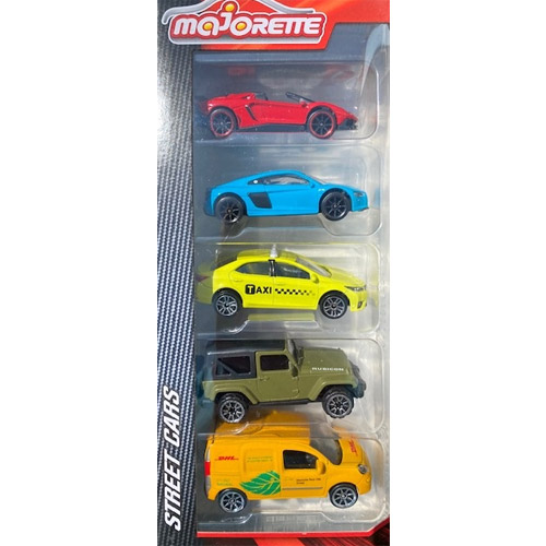 Beleef uren speelplezier met de Majorette Street auto's set van 5, parkeer ze in je garage of race op je racebaan het kan allemaal.
