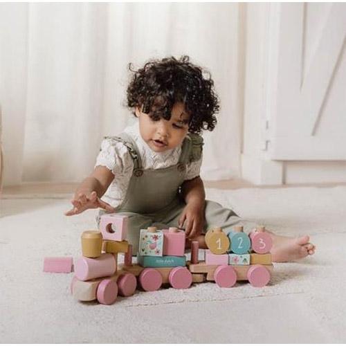 Met blokken versierd met kleurrijke bloemen, vriendelijke vogels en de nummers 1,2 en 3 neemt deze blokkentrein je mee naar een land van verbeelding en verwondering.