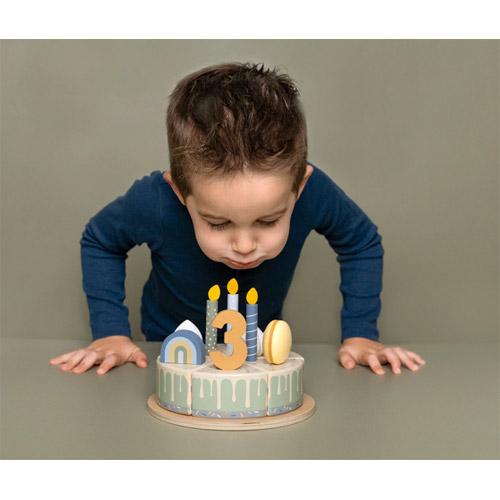 Houten verjaardagstaart Little Dutch blauw