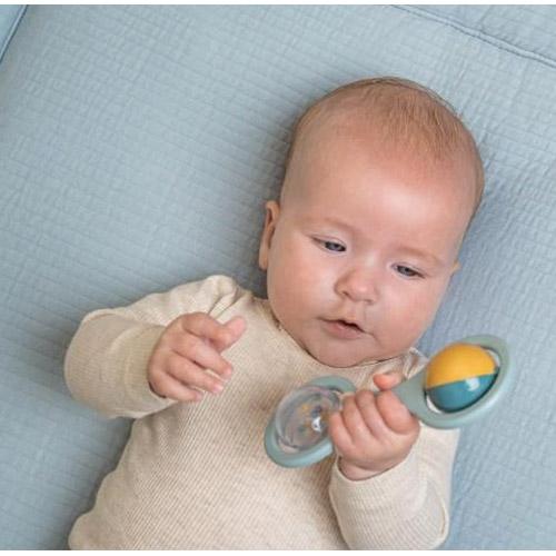 De rammelaar heeft een handvat waardoor je kindje deze goed vast kan houden en er met veel plezier mee kan spelen.