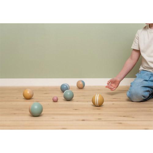 Deze set houten jeu de boules ballen wordt geleverd met 6 grote ballen, 2 kleine (jack) ballen en een canvas tas om de set in op te bergen.