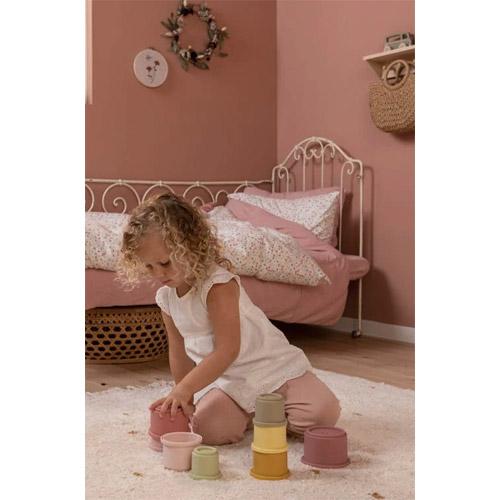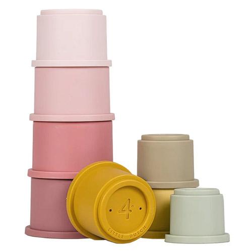 Deze set met bekers daagt je peuter uit om ze één voor één op elkaar te stapelen.