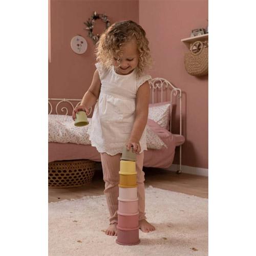 De 8 stapelbekers hebben een nummer aan de bovenkant en passen gemakkelijk in elkaar om te voorkomen dat de toren te snel valt.