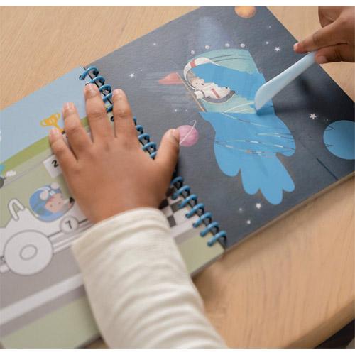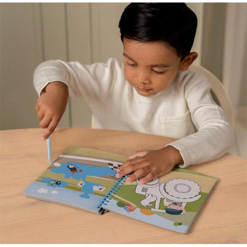 De kraskaarten en kleurplaten in het kras- en schetsboek 'Jim & Friends' van Little Dutch zijn een leuke creatieve activiteit voor beginnende kunstenaars.