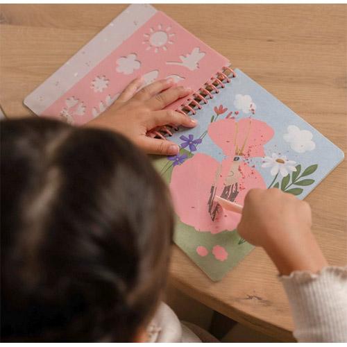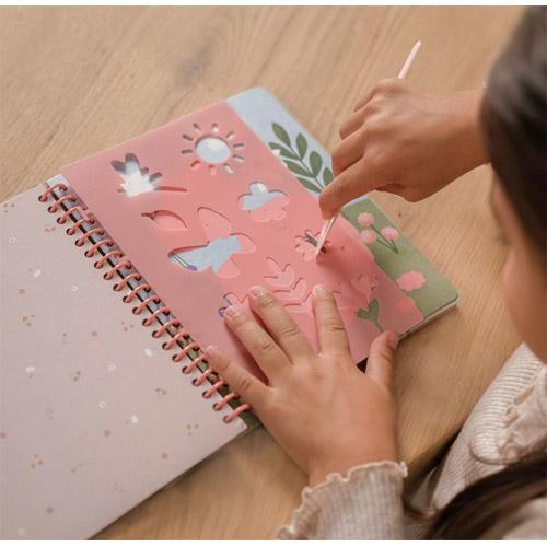 De kraskaarten en kleurplaten in het kras- en schetsboek 'Rosa & Friends' van Little Dutch zijn een leuke creatieve activiteit voor beginnende kunstenaars.