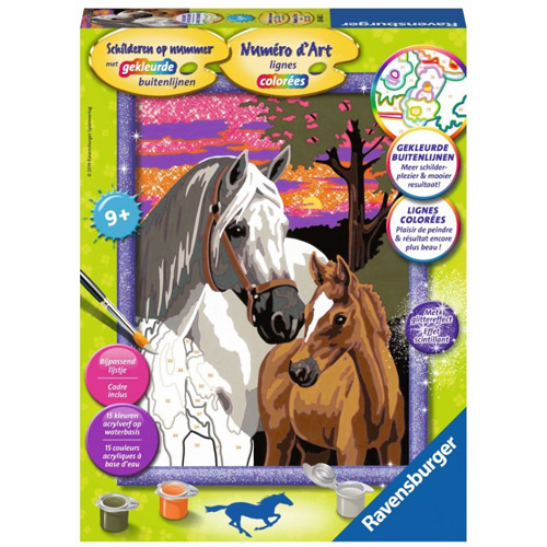 Ravensburger schilderen op nummer paarden in de zonsondergang