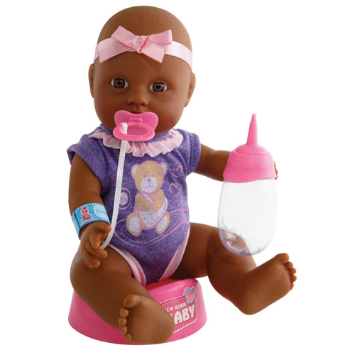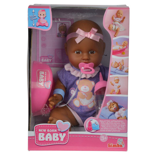 New Born Baby Drink- en plaspop Afro-Amerikaanse meisje 30 cm