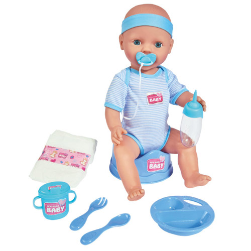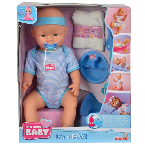 De New Born Baby boy met drink- en plasfunctie wordt met veel accessoires geleverd en maakt het zo gemakkelijk om je kleine lieveling te verzorgen.