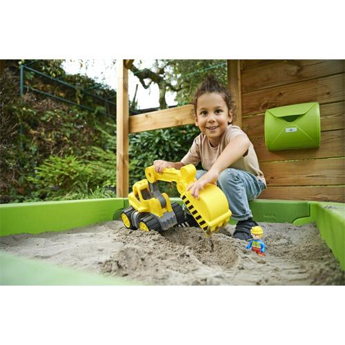 De shovel van de robuuste zandgraafmachine heeft een inhoud van maar liefst 0,5 liter.