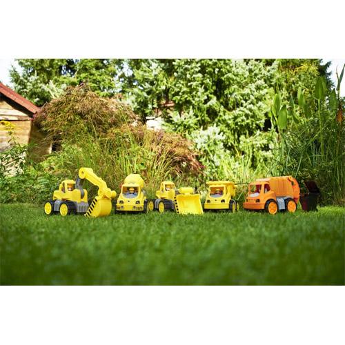 Vrolijke zonnige gele, grijze en feloranje accenten maken de BIG Power-Worker graafmachine tot een blikvanger op kleine bouwplaatsen.
