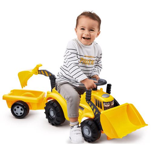 Word een echte (land)bouwer met deze gele Ecoiffier tractor met aanhangwagen.