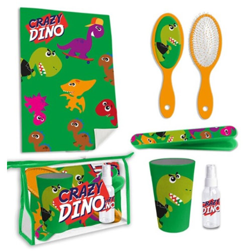 De Crazy Dino toiletset is perfect voor op vakantie of tijdens een nachtje kamperen.