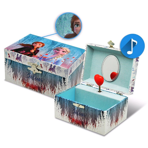 Bewaar je mooiste juwelen in het Muzikaal juwelendoosje van Frozen, voorzien van een spiegeltje.