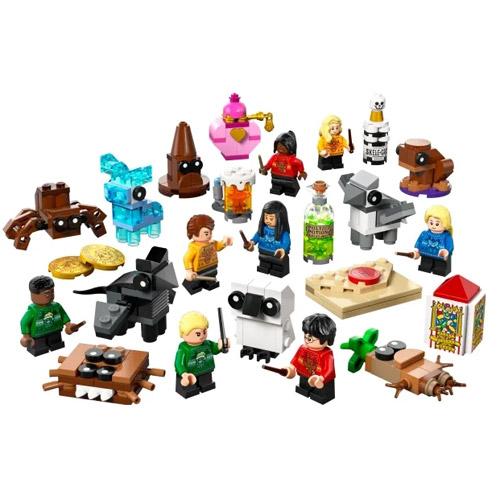 De adventskalender bevat LEGO figuren van magische wezens zoals Scheurbek, Aragog een een hertspatronus.