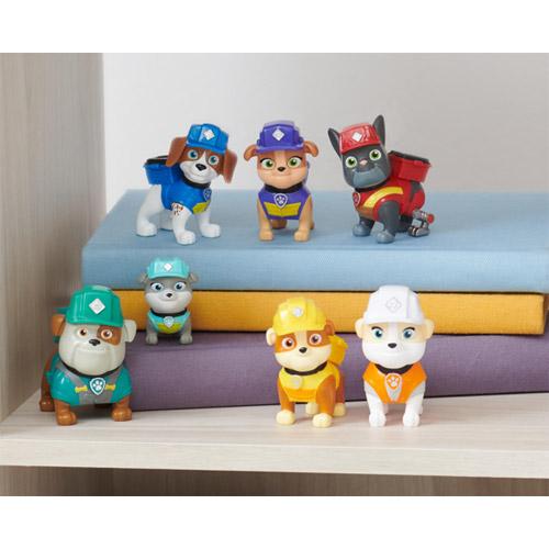 Elk van deze speelgoedfiguren is meer dan 5 cm groot en draagt een officieel Rubble & Crew-uniform.