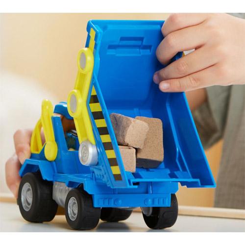 Deze set van een speelgoedfiguur met voertuig bevat een Wheeler-actiefiguur van 5 cm, gekleed in zijn officiele Rubble & Crew-uniform. Wanneer het tijd is voor actie, klik je Wheeler op de bestuurdersstoel en duw je hem omlaag voor spannende licht- en geluidseffecten uit de serie. Vul de kiepwagen met materiaal, til de laadbak op om de inhoud eruit te kiepen en druk de grond aan met de platwals, net zoals Wheeler in de serie doet.