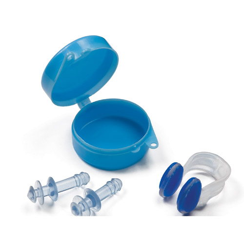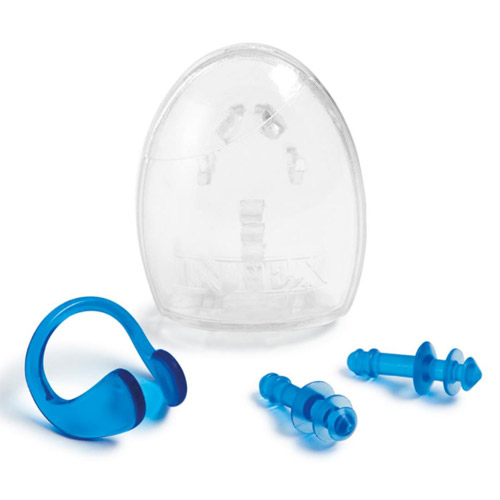 Om geen last te hebben van water in de oren en de neus heeft Intex de neus en oorclips, als set in een doosje.