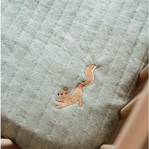 De voorkant is gemaakt van biologisch katoen met doorgestikte strepen voor een eigentijdse uitstraling en heeft een leuk detail van een geborduurde eekhoorn.