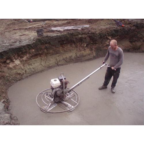 - Leg de eerste rij polystyreen bouwblokken in een mortelbed.