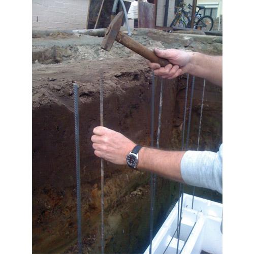 In de holle blokken wordt een bewapening aangebracht bestaande uit horizontaal en verticaal aangebrachte ijzeren staven (bewapening).