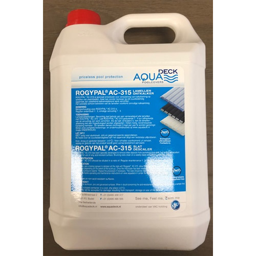 Aquadeck lamellen ontkalker is speciaal ontwikkeld voor verwijdering van kalkafzetting op lamellen van zwembaden, maar kan zonder bezwaar op elk zuurbestendig oppervlak zijn uitstekend kalk verwijderend werk verrichten.